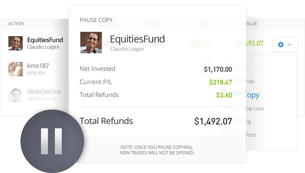 - Par exemple, si vous copiez avec 500 $ et annulez pour 200 $ de positions, ces 200 $ seront préservés pour les futurs trades du trader copié.